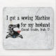 "I got a sewing machine for my husband - Good trade, huh?" A folk art picture of a vintage sewing machine with a silly joke for sewers! The perfect needleworker gift!