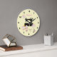 A beautiful cream colored Clock with a black vintage sewing machine surrounded by pretty colored fabric pieces, bobbins of thread, scissors and buttons. A great wall decor for any sewing room or craft shop. Would make a great gift for any quilter or sewer. The clock can be personalized by changing the name "Margaret" to another name to make it extra special.