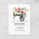 Black White Tailor Business Card with Vintage Sewing Machine and Red Green Watercolor Flowers. Business Card for Tailor, Seamstress, Fashion Designer, Craft Maker, Dress Maker. Use personalize this template option to change the text | Use customize further option to change the text style, size and color if required.