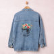 Sewing Machine Tailor Crafter Denim Jacket with Black Vintage Sewing Machine and Red Green Watercolor Flowers. Use personalize this template option to change the text | Use customize further option to change the text style, size and color if required. Check out more products with this design in the collection below.