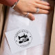 This "Handmade with love" rubber stamp features a sewing machine with custom name.