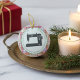 Lightweight, smooth, pure white ornament with nice sheen. Perfect size to be seen from across the room ... and to attract closer inspection! Price was great for ordering enough for the whole family! Clear, bold black design just as requested. Matches the order exactly. Just so nice!