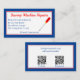 A modern business card for sewing machine repair specialists. The design shows a small screwdriver and a blue and red border. Ideal for any small repair businesses such as computer, mobile phones, electronics and many more. Add your company details for a stylish, modern minimalistic business card. Your business details and two QR codes can be added easily to the back.