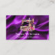 This elegant and glamorous business card features a vintage sewing machine and flowers on a purple faux satin background. The text combines handwritten script and modern sans serif fonts for a classy and sophisticated look. This is perfect for a seamstress, dressmaking, clothes making, alternations, tailor business.