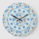 Sewing Needles and Buttons Pattern Blue Large Clock