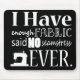 Show your love for fabric and all things sewing by sporting this awesome "I have enough fabric, said no seamstress ever!" quote! Also makes a great gift for the fabric loving hook sewer in your life! Remember, you can NEVER have enough fabric, period!!