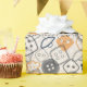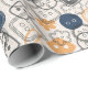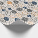 This gift wrap features a tan background with different shapes and colors of buttons/sewing notions. It would be great to wrap gifts for someone who enjoys sewing as a hobby, a seamstress, etc.