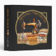 Sewing Projects Vintage Style Binder | A beautiful binder for any seamstress to organize their sewing projects. The black background with tone on tone black ticking stripes is a subtle base for these vintage style sewing graphics. Easily Personalize this binder with a name on the front cover and the spine. The front cover has a cozy scene of the seamstresses work space, with a sewing machine, a stack of pretty fabric and a sewing basket. The back of this binder has handy charts for quick reference when you need it. Great place to store your past, current and upcoming sewing project and project ideas. Great gift for yourself or another seamstress you know.