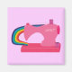 This delightfully crafty retro sewing illustration features a bright pink sewing machine with the word "sew" on it stitching a colorful rainbow with pink thread! This original vintage inspired sewing design is the perfect unique gift to buy for the seamstress or tailor in your life!