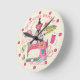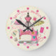 Sewing Room Clock. This fashionable dressmakers sewing room wall clock has a sewing room theme. The design has various sewing equipment and sewing accessories, needles, pin cushion, thimble, dress makers mannequin, cotton-reels, tape measure, bodkin, scissors, and a sewing machine. There is also the word love styled in cotton thread and a pink ribbon too. It has 12 pink buttons in place of numerals and has a dressmakers square patterned paper background. The words: Sewing Room complete this couture themed sewing clock This sewing room wall clock makes a great gift for dressmakers, seam-mistresses, tailors or anybody who loves sewing and couture, and will add exquisite charm to any Sewing Room wall.