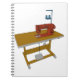 A sewing table with a sewing machine on it. This design looks really effective on these Spiral Notebook