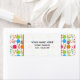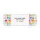 An address label featuring a candy pattern consisting of lollipops, gumballs, cupcakes, and stick candy.