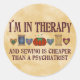 "I´m in Therapy - And sewing is cheaper than a psychiatrist!" Colorful needleworkers design, and the perfect gift for sewing machine addicts!