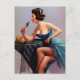AI generated art of a beautiful woman in sexy blue dress in a vintage pinup style