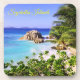 Welcome to the exotic island paradise of Seychelles! Photo was captured on a warm, bright, and sunny day. The tropical crystal blue sea water sparkles in the sunlight and is warm and inviting for those who are ready to splash around, dive, or swim. Lush green coconut palms and trees are seen in the foreground of this photo. Smooth rock weathered by the sea is just off the sandy shore. An archipelago is seen in the distant background. Imagine relaxing on the soft white sandy beach, hearing the sea waves wash ashore, the sound of sea birds, and a gentle warm breeze in the air. That is what comes to my mind when I see this tropical Seychelles photo print. Maybe you envision yourself on a sailboat or simply sitting on the islands beach with a cold drink in hand. Whatever this photo makes you feel, you can be sure that your mind will be in tropical paradise! The top of this beverage coaster says " Seychelles Islands" and can be removed or modified with included text template.