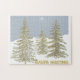 A familiar, Holiday greeting, has been digitally-edited, to create this, graphic drawing, of guilded-gold, trees, grouped together, upon a snowy, backdrop-with glowing, Symbolic, Holy Star, against a slate-blue, sky.