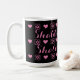 Welcome shabbat with this stylish pink-and-black coffee mug! Makes a nice gift for anyone who loves the sabbath.