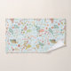 Pretty Shabby Chic cottage living inspired bath towel set features pastel birds, flowers and branches on pastel blue background