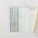 Pretty, shabby aged paper with a collage effect of floral patterns and lace style embellishments. The back of this paper is a complimentary pale blue.