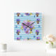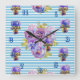 Shabby Chic Blue Stripe Pansy Flower Floral Art Square Wall Clock