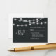 Shabby chic chalkboard design with glowing outdoor lights.