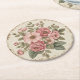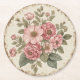 A circular wreath of blush‑pink blooms and tender green leaves sits at the center, painted with a gentle, vintage delicacy. The flowers—reminiscent of old‑garden roses—feel both lush and slightly faded, as if touched by years of sunlight. Surrounding the bouquet is a cream background with a distressed, tea‑stained texture, framed by a softly weathered brown border that gives the entire piece an antique, well‑loved character. The overall effect is warm, romantic, and nostalgic—classic shabby chic with a whisper of French country charm.