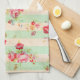 Shabby Chic Girly Red Green Roses Stripes Pattern Towel