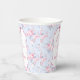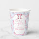 Shabby Chic Pink Bow It's A Girl Baby Shower paper cups. Beautiful elegant pink watercolor bow with dainty pretty roses on soft light blue background. Sweet as the mom to be. Feminine heart accent scripted lettering.