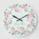 Shabby chic rose wall clock floral pink and mint colors, romantic, cottage chic style with personalized text. Add your own name, family name, date, etc.