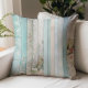 Shabby Chic Stripes Aqua Beige Throw Pillow