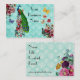 Vintage Parisian business card displaying a beautiful peacock and butterflies with royal crown and fleur di lis background.