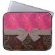 shabby hot pink brown etched leafy pattern laptop sleeve