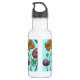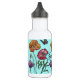 Shabby Poppy Red Purple on Aqua Customizable Name Stainless Steel Water Bottle