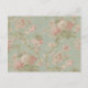 Shabby chic postcards feature pink roses on seafoam background.