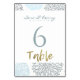 SHADES OF BLUE DAHLIA FLORAL PATTERN GOLD TABLE NUMBER