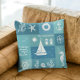 Add a touch of coastal charm to your seaside retreat with this beautifully designed throw pillow featuring a colorblock design in shades of the ocean, teal blue and turquoise. Perfect for a nautical beach house theme, this pillow showcases whimsical illustrations reminiscient of the sea: sailboats, seahorses, anchors, coral, seashells, a life preserver, and a ship’s wheel. Crafted in a crisp blue and white palette, this pillow is the ideal accent for beach-themed home decor, vacation homes, or coastal-inspired living spaces. Easily personalize it with your family name, a custom message, or an established date to make it uniquely yours. Whether you're styling a breezy beach house, gifting a loved one a thoughtful housewarming present, or sprucing up a vacation retreat, this throw pillow combines practicality with coastal elegance. Transform any room into a seaside haven with this timeless design!