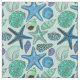 Shades Of Blue Seashells And Starfish Pattern Fabric