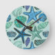 Shades Of Blue Seashells And Starfish Pattern Round Clock