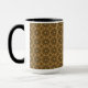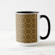 This mug features an abstract repeating tiled pattern in shades of gold and brown.