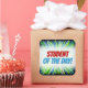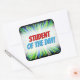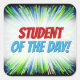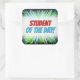 This vibrant design features a pattern of lines colored different shades of green and blue bursting outward from a central point. It also features the message, "STUDENT OF THE DAY!".