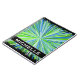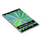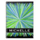 This vibrant notebook design features a pattern of lines colored different shades of green and blue bursting outward from a central point, on a black background. It also features a custom name.