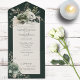This enchanting All in One wedding invitation beautifully captures the essence of nature with its stunning floral design in shades of green on a serene dark green background. This invitation suite is the perfect choice for couples seeking an elegant and romantic touch to their special day. The All-in-One wedding invitations are both beautiful and practical by combining the wedding invitation with an easy to remove perforated RSVP postcard. They are also quick and easy to prepare for mailing. Simply address the invitation, fold the back flap and seal with the included clear stickers. Once your guests receive the pre-addressed invitation they simply tear off the perforated RSVP card and drop it in the mail.