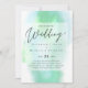 Modern wedding invitation featuring text template fields on both sides and a cloud of greeny blue color.