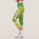These modern workout leggings feature trendy shades of green with customizable name on both sides in white all caps font