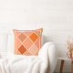 Throw pillow designed with warm, earthy diamond patterned shades of orange squares.