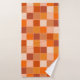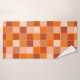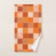 Home decor and gift products designed with warm, earthy patterned shades of orange squares.