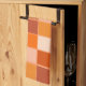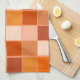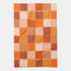 Home decor and gift products designed with warm, earthy patterned shades of orange squares.