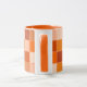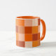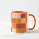 Home decor and gift products designed with warm, earthy patterned shades of orange squares.
