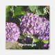 Beautiful purple hydrangea plants with leafy green foliage accent this lovely garden magnet.