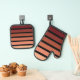 Oven Mitt and Pot Holder Set printed with Shades Of Red Stripes On Black artwork design by TheFabricSeal at Zazzle.com #ZazzleMade TheFabricSeal©️Original.